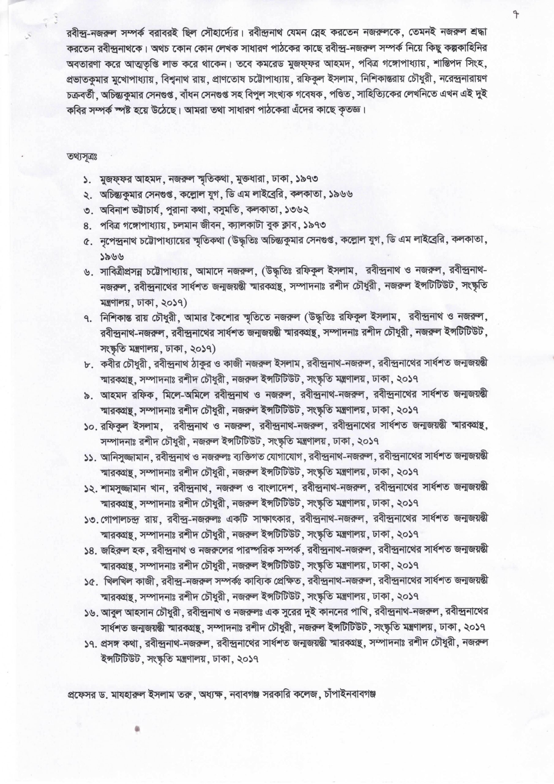 Dr. Mazharul Islam Toru is the Principal of Adina Fazlul Haque Government College in the district of Chapai Nawabganj. He obtained a Ph. D degree in Bengali from Rajshahi University. He was the Head of the Bengali Department of the Nawabganj Government College in Chapai Nawabganj. He has authored many books including books on the liberation war and folk songs.