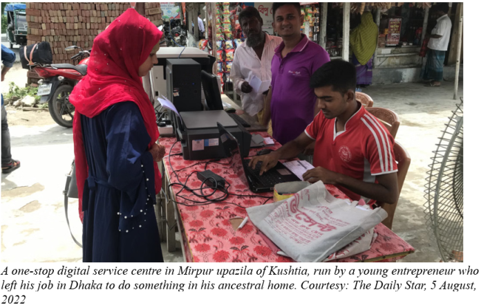 However, the march of development has also displaced many traditional livelihoods. The expansion of industrial production has marginalised local artisans—potters, weavers, and bamboo workers whose crafts once defined the village economy. Plastic has replaced biodegradable natural inputs like clay and jute. While these shifts signal convenience and efficiency, they also point to cultural loss and environmental degradation. Beneath the bright light of progress lies the shadow of exclusion. Those who fail to adapt to the new market realities often find themselves in urban slums, joining the growing ranks of informal labourers and rickshaw pullers.